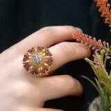 Diamond 💎 Cut Zircon Jaddao adjustable Ring 22-K Gold Plated hand crafted